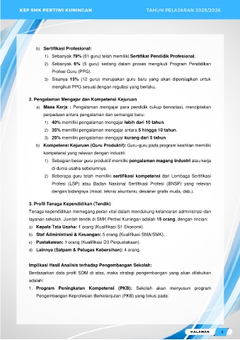 3) 25% memiliki pengalaman mengajar kurang dari 5 tahun.